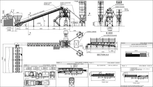 Zbiorniki te stanowią ważną część stacjonarnej wytwórni betonu o wydajności 120 m³/godzina, i są używane do magazynowania różnych rodzajów i wielkości kruszywa wykorzystywanego w produkcji betonu. Kruszywa, takie jak piasek, żwir i kruszony kamień, są podzielone na komory w tych zbiornikach, aby zachować jakość materiału. Pozwala to na kontrolowanie podawania kruszyw do jednostki mieszającej za pomocą kontrolowanych mechanizmów dozujących, co zapewnia precyzyjne dozowanie w celu uzyskania dokładnej i wysokiej jakości mieszanki betonu. Efektywne przetwarzanie materiałów od zbiorników na kruszywa do jednostki mieszającej w wytwórni betonu poprawia ogólną wydajność, a także wydajność wytwórni w projektach wymagających dużych ilości betonu.